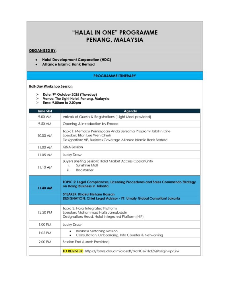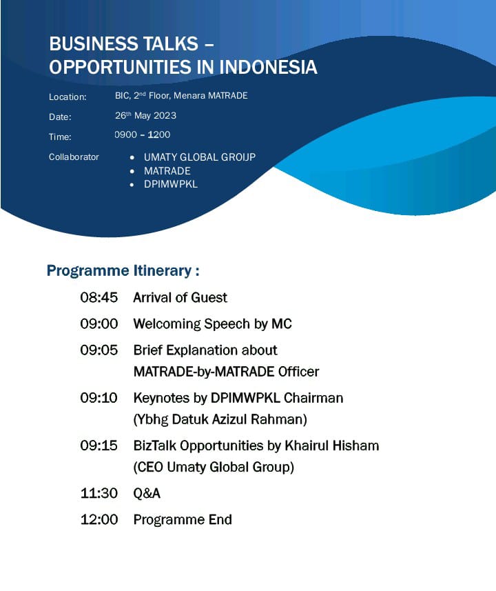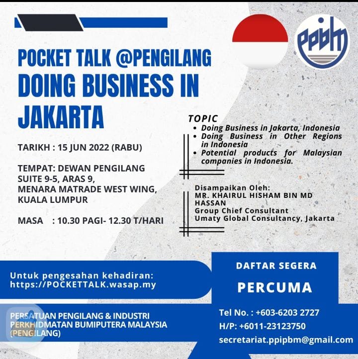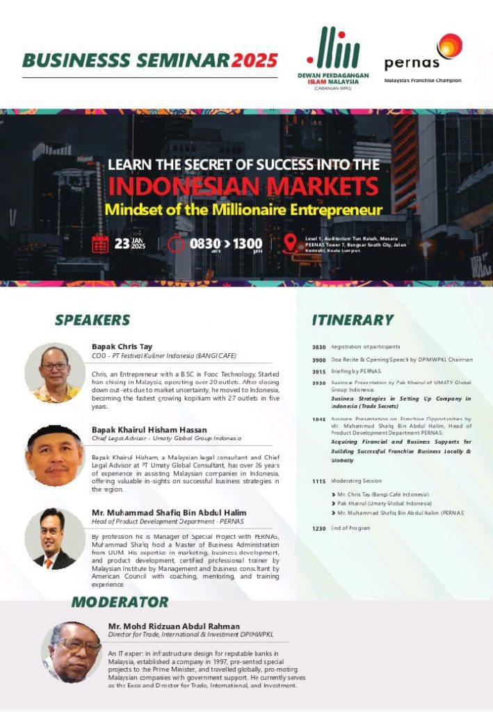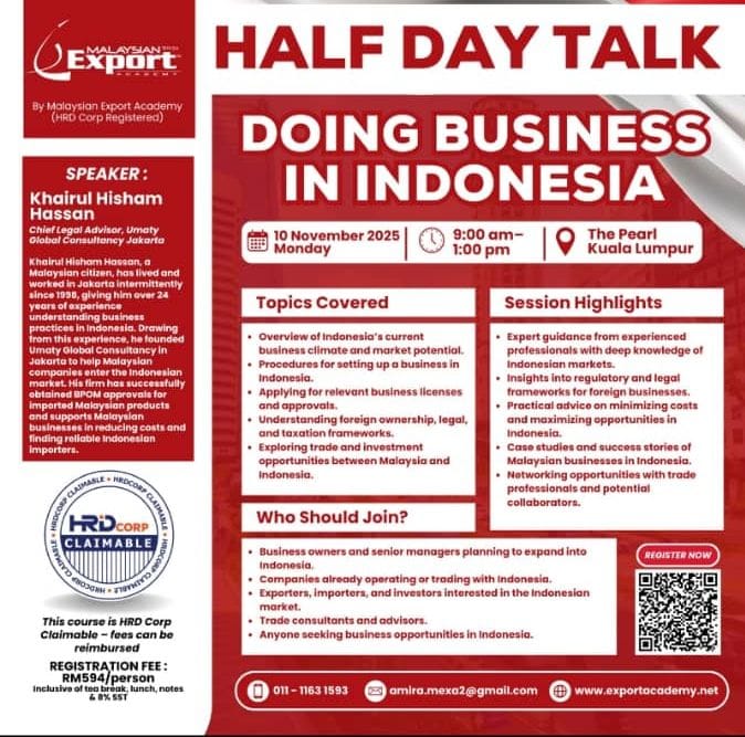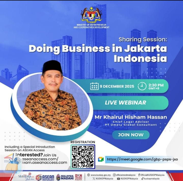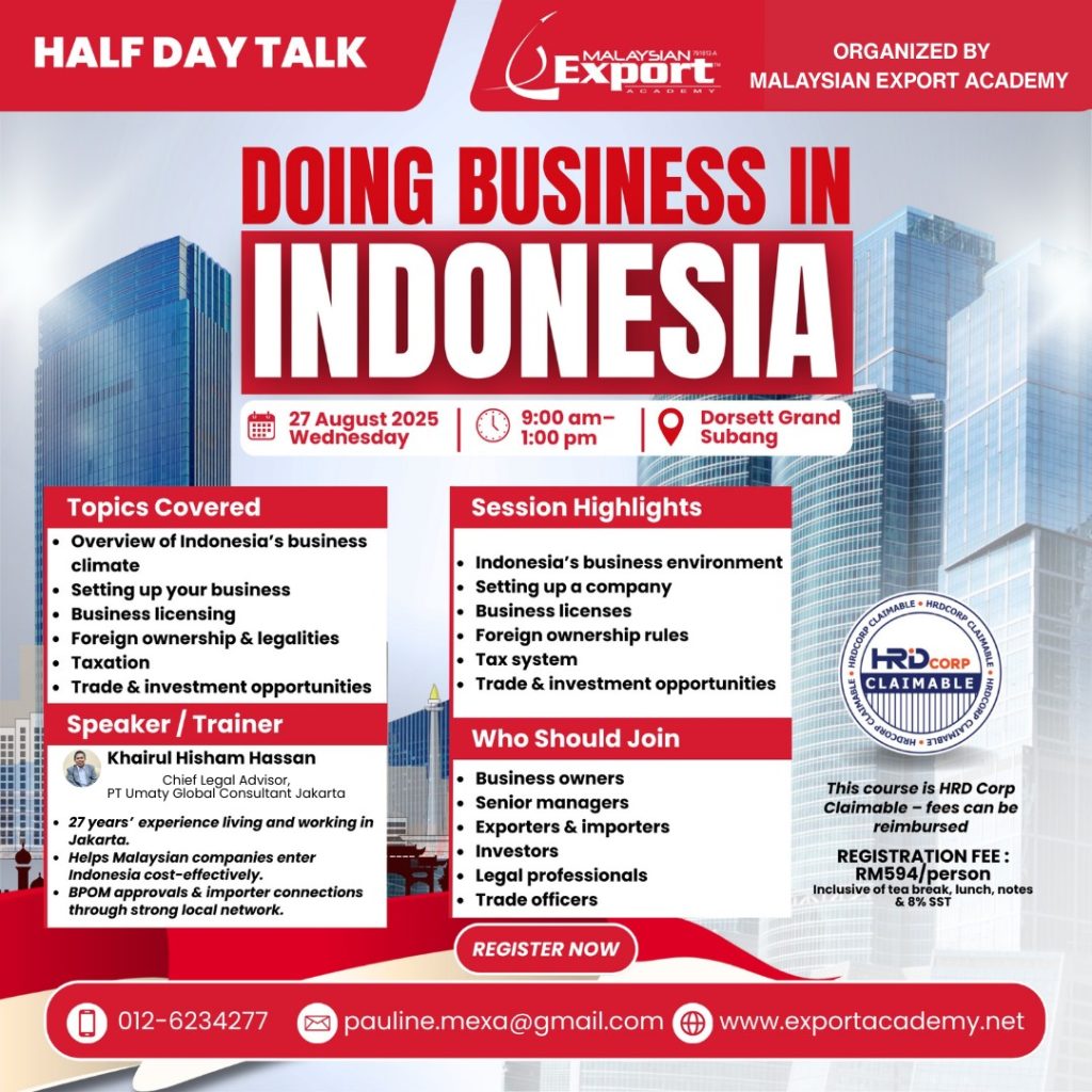 Our founder, Khairul Hisham, has been invited as a Speaker on “Doing Business in Jakarta Matters” by The Embassy of Malaysia in Jakarta, Matrade Headquarters, Matrade Jakarta, Dewan Perdagangan Islam Malaysia, Malaysian Export Academy (MEA) and a few other chambers of commerce and trade associations in Malaysia – a testament to the trust placed in our expertise.